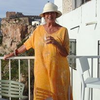 We are on our way to a flamenco feast at Restaurant Traviesa. It sits high upon a cliff in the Casco Antigo of Salobrena, with a panoramic view across the valley towards Sierra Nevada, still all white in mid May. The bar and the kitchen are actually inside a cave, while the guests sit outside, enjoying the spectacular vista. The sun is disappearing behind the mountains. Soon it will be dark. The candles are lit, casting flickering shadows over the romantic surroundings. The waiter is happy to serve, bringing wine and delicious food from Susanna´s kitchen to the crowd waiting for the show to begin. The guitarist is already here. He looks as if he was born with this instrument in his hands. Music runs in his family – most likely it was daddy who helped him with his first grips. The guitar rests in his lap, his fingers caressing the strings like a sensitive lover. A promising beginning. Who would have imagined that those ordinary girls – the flamenco dancer and the singer – could be so profoundly transformed? One hardly noticed them on arrival, small of stature, reserved, almost shy, in their blue jeans and tee-shirts. They reminded me of schoolgirls, who were hesitatingly daring to enter a bar for the first time. But when they descend from the restroom, they are almost unrecognizable. Red lips glowing, hair set up in a swinging tail, eyebrows painted pit black. Both are dressed in a vivid touch of red – “el color del amor”. Their blouses are tight around their shoulders and bosoms. The wide skirts flicker around their ankles like a joyful waterfall. Their bearing is now suddenly distant and haughty. Their eyes are fixed on something far away, invisible to the rest of us, in an aggressive and challenging manner.