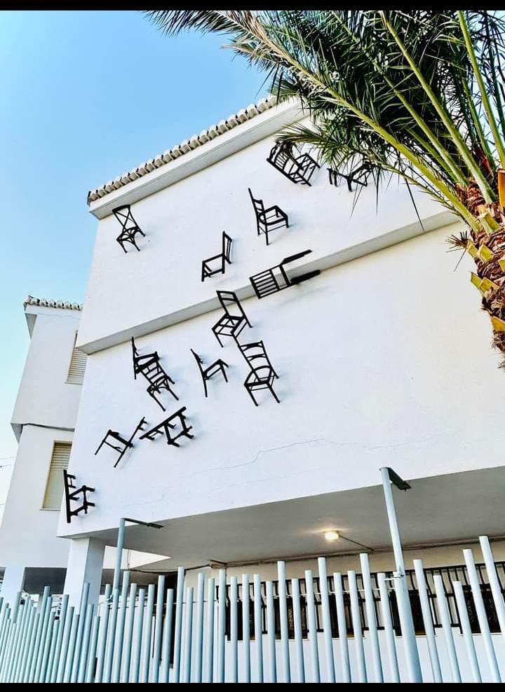 Instalación que reinterpreta la tradición de “sacar las sillas a la puerta” como símbolo de conversación y vida de barrio, conectando memoria y presente.