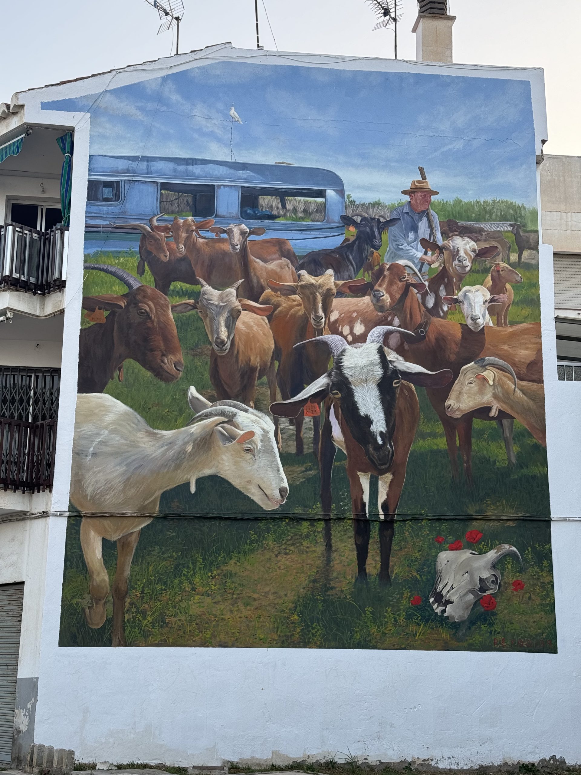 Muralista que trabaja en gran formato con un estilo narrativo y costumbrista. Una de las obras recuerda el éxodo de febrero de 1937 por la carretera Málaga-Almería, conocido como “La Desbandá”.
